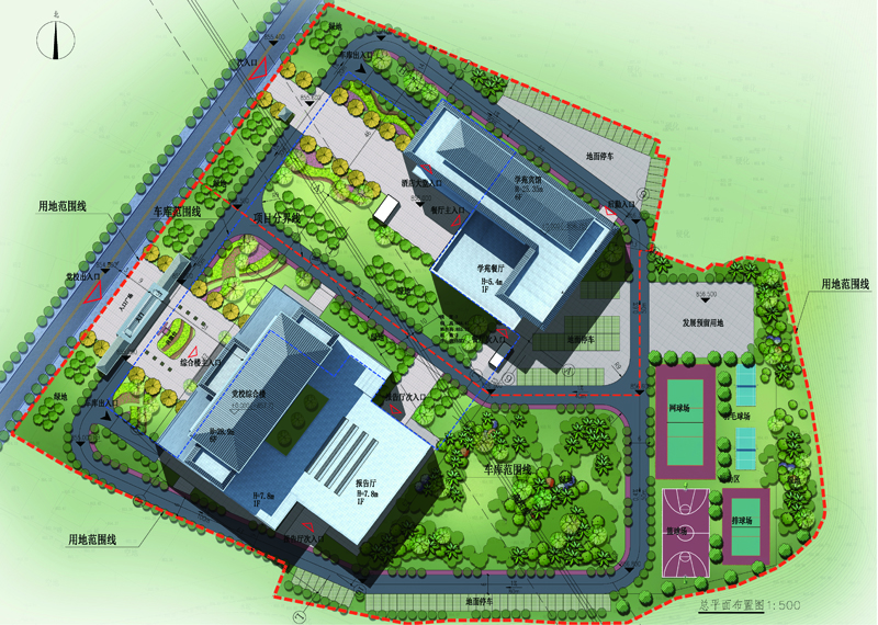 黨校新校區(qū)項(xiàng)目選址于桃花源街道東流口村4組(小地名:五家灣),距離現(xiàn)黨校有11.8公里,項(xiàng)目用地面積為48.5畝?偨ㄖ娣e:25613.00m2(其中綜合樓建筑面積:11871.00m2,學(xué)苑賓館建筑面積:13742.00m2),設(shè)計(jì)綜合樓1棟、學(xué)苑賓館1棟、地下車庫(kù)、大門(mén),能滿足培訓(xùn)、辦公、會(huì)議、就餐和住宿等功能。