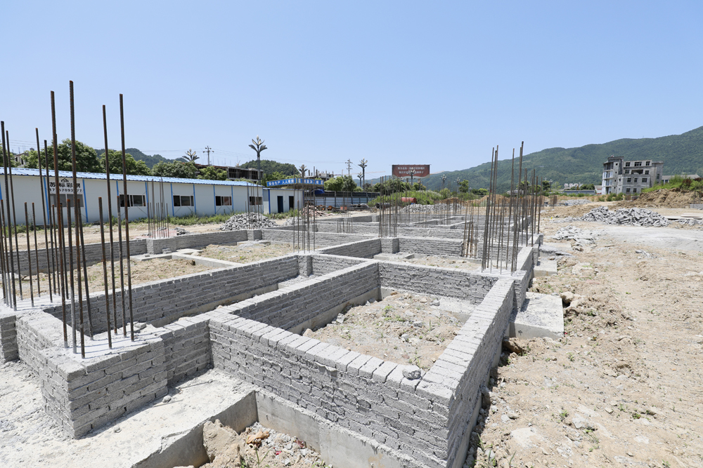 已完成房屋結(jié)構(gòu)基礎(chǔ)澆筑回填9個組合(19戶);另墊層已澆筑20個組合(50戶);鋼筋制作完成5個組合(11戶),支模進行中。磚砌基礎(chǔ)3個組合(7戶);以及小區(qū)道路路基換填完成和市政道路換填路基、壓實、路基挖方。