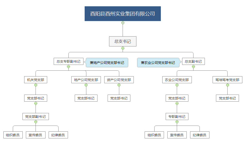 中共酉陽縣酉州實業(yè)集團有限公司機關(guān)支部委員會:(書記:冉華偉,副書記:潘發(fā)光,宣傳委員:張振中,紀律委員:陳建紅,組織委員:敖孟梅)